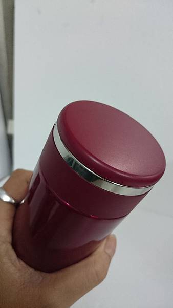 紅色瓶身如鋼琴的質感 上蓋則是霧面質感